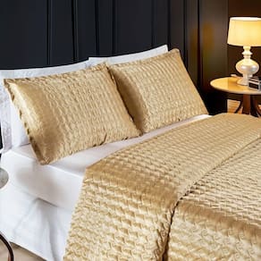 O Cobre Leito Shine é confeccionado em Cetim Charmousse, um tecido luxuoso e brilhante, com toque macio e sedoso. A Coleção Shine apresenta um padrão totalmente matelado e contém 3 peças, sendo: 1 Cobre Leito e 2 Portas Travesseiros com Debrum.