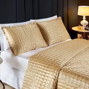 Marca: Bia Enxovais | Estampa: Não se Aplica | Medidas: 01 Cobre Leito 2,80m x 2,40m02 Porta Travesseiros 70cm x 50cm | Número de Peças: 03 Peças | Material: Poliéster | Cor Predominante: Dourado | Cama Indicada: King