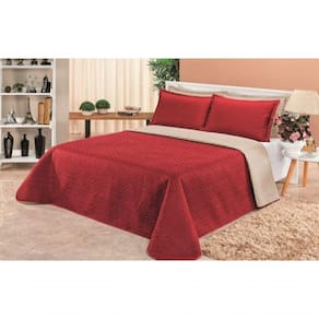 Cobre Leito Cobertor 2 Travesseiros Quarto Casal 2,60x2,40 Cor:vermelho Bege - Única