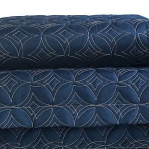 Cobre Leito Colcha Queen 3 Peças Bordado Luxury Azul Marinho
