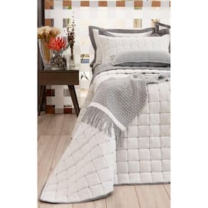 Cobre Leito Diana King Cinza 2,60X2,80 M Dupla Face 5 Peças