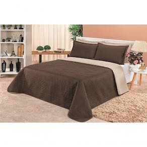 Cobre leito confeccionado com tecido dupla face, mais versatilidades podendo ser dos dois lados, e cada um com uma cor diferente, com acabamento em viés, acompanha dois porta travesseiros.