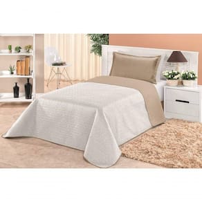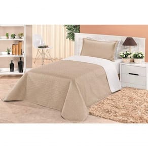 Cobre leito confeccionado com tecido dupla face, mais versatilidades podendo ser dos dois lados, e cada um com uma cor diferente, com acabamento em viés, acompanha um porta travesseiro.
