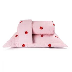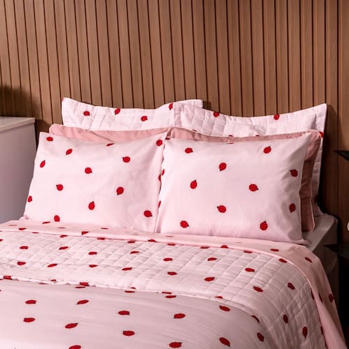 Obrigado por visitar nossa loja, temos os melhores produtos de cama, mesa e banho para sua casa com a melhor qualidade e variedade em diversos modelos, todos são rigorosamente revisados.Contém:01 Cobre leito estampado com 2,55m x 2,45m02 Porta travesseiros estampados com 0,7m x 0,5mComposição:Tecido 150 fios 67% Algodão 33% PoliésterTecido de baixo (forro) 100% poliesterEnchimento: Manta resinada 100% PoliésterIdeal para cama casal queen ou padrão. Forrado em tecido.As fotos são ilustrativas, as cores podem variar de acordo com cada monitor e não representam todas as peças que compõem na foto do produto.Muito obrigada pela sua visita e boas compras.
