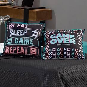 Apresentamos o Kit Cobre Leito Game Over, perfeito para os apaixonados por games e estilo moderno. Este conjunto oferece cinco peças cuidadosamente selecionadas para transformar o quarto do seu jovem gamer. Com um design divertido inspirado em jogos e video-games marcantes, este kit traz uma vibe contemporânea e descontraída ao ambiente. A face dupla proporciona versatilidade, permitindo que você alterne entre os estilos conforme desejar. O kit inclui um cobre leito acolchoado, porta-travesseiros matelado e estampado e duas capas de almofadas estampadas temáticas, garantindo uma cama confortável e estilosa. Combinando personalidade e conforto, este kit é a escolha ideal para quem busca criar um espaço único e acolhedor para os fãs de jogos. Confira!