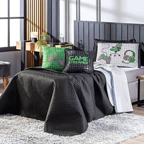 Cobre Leito Game Streamer Verde Dupla Face C- Almofadas Casal Padrão 07 Peças - Única