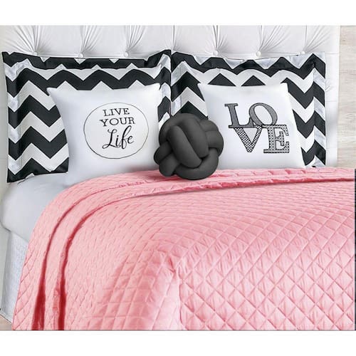 Composição: Cobre leito, almofadas Bordadas e Almofada nó: 100% Poliéster; Porta travesseiros: 50% Algodão e 50% Poliéster;