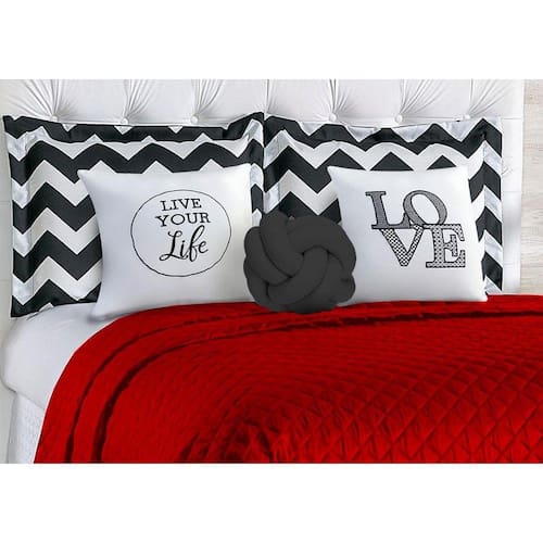 Composição: Cobre leito, almofadas Bordadas e Almofada nó: 100% Poliéster; Porta travesseiros: 50% Algodão e 50% Poliéster;