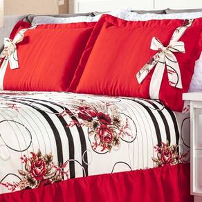 Cobre Leito Isabela Queen 3 Pecas - Floral Vermelho/preto
