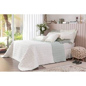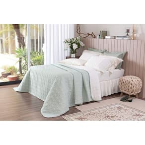 Cobre Leito King Charlote Lavive Verde Malva/Palha 3 Peças Combinação incrível de cores clássicas com o delicado bordado do matelassê e da laise. O coordenado Charlote é dupla face , sendo a face 1 verde malva e a face 2 palha. Composição: Percal 100% Poliéster Contém: 1 Cobre leito Dupla Face medindo 2,60 x 2,80 m 2 Porta Travesseiros com Abas medindo 75 x 55 cm