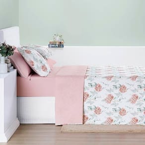 A Coleção ;Cotton Select vem ;proporcionar charme e elegância para seu quarto ;é ideal para compor uma decoração de quarto romântica e delicada. O conjunto ;é composto por cobre leito dupla face matelassado, de um lado com estampa e do outro lado ;liso, ;junto de porta travesseiro matelassado estampado, debrum (abas). Todos os itens são fabricados com tecido ;200 fios 80% algodão / 20% poliéster que recebe um tratamento especial para ser macio ao toque.