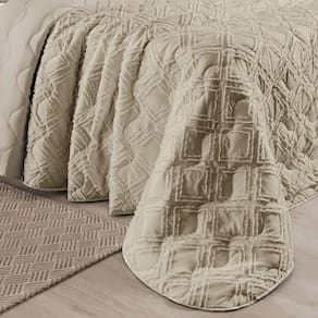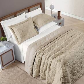 Kit Cobre Leito confeccionado em tecido Micropercal 300 Fios. Matelassê com alto padrão de qualidade, proporcionando conforto e sofisticação. A textura no próprio tecido dá um charme a mais para esse cobre leito.