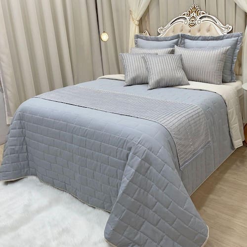 Cobre Leito King Picasso Dupla Face Com Almofadas E Xale 10 Peças Prata