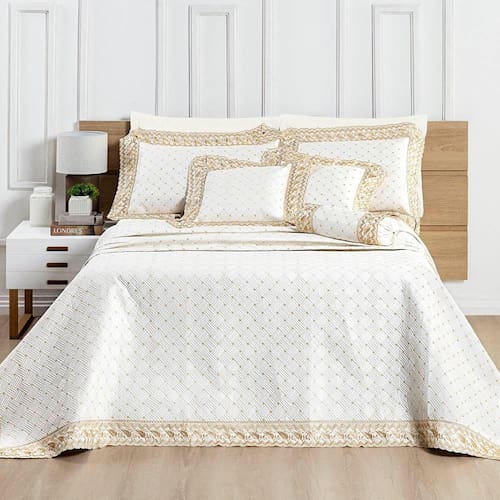 Experimente o luxo e o conforto do Cobre Leito Royale em Percal 100% Algodão, com seus impressionantes 200 fios que garantem uma experiência de sono verdadeiramente digna da realeza.