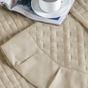 Cobre Leito Madri Percal 200 Fios 100% Algodão King 03 Peças - Caqui O Cobre Leito Madri é confeccionado com tecido percal 200 fios 100% Algodão e possui detalhes no barrado, acompanha porta travesseiros. Produto composto por: 01 Cobre leito 2,80m x 2,40m02 Porta travesseiros 80cm x 55cm (Medida útil: 70cm x 50cm) Composição: Tecido Superior e Inferior: Percal 200 Fios 100% AlgodãoEnchimento: 100% Poliéster