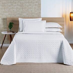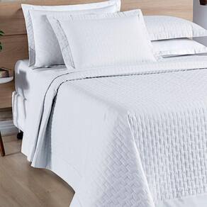 O Cobre Leito Madri é confeccionado com tecido percal 200 fios 100% Algodão e possui detalhes no barrado, acompanha porta travesseiros. Produto composto por: 01 Cobre leito 2,60m x 2,40m02 Porta travesseiros 80cm x 55cm (Medida útil: 70cm x 50cm) Composição: Tecido Superior e Inferior: Percal 200 Fios 100% AlgodãoEnchimento: 100% Poliéster