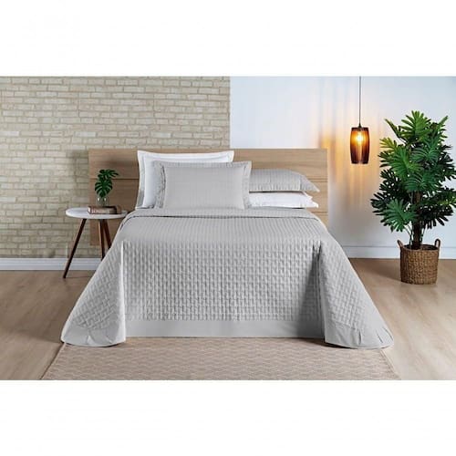 Cobre Leito Madri Percal 200 Fios 100% Algodão Queen 03 Peças - Cinza O Cobre Leito Madri é confeccionado com tecido percal 200 fios 100% Algodão e possui detalhes no barrado, acompanha porta travesseiros. Produto composto por: 01 Cobre leito 2,60m x 2,40m02 Porta travesseiros 80cm x 55cm (Medida útil: 70cm x 50cm) Composição: Tecido Superior e Inferior: Percal 200 Fios 100% AlgodãoEnchimento: 100% Poliéster