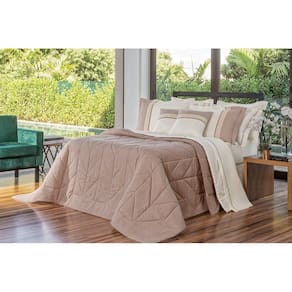 01 Cobre Leito Dupla Face 2,60m comprimento x 2,80m largura 02 Porta Travesseiros matelados com abas e renda 75cm x 55cm 02 Almofada com renda e enchimento 45cm x 45cm