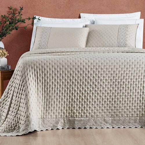 Cobre Leito Nobless Casal Padrão 03 Peças - Amêndoa