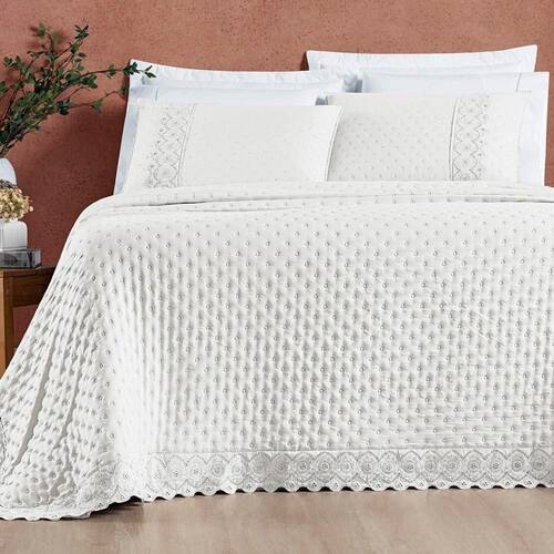 Cobre Leito Nobless Queen 03 Peças - Off White O Cobre Leito Nobless é a escolha perfeita para transformar seu quarto em um refúgio de conforto e estilo. Feito com tecido micropercal 200 fios e matelado ultrassônico, oferece uma sensação suave e agradável. Seu design encantador é complementado pelo acabamento em leise nos porta travesseiros e no cobre leito, adicionando um toque de elegância discreta. Renove o visual do seu espaço de descanso com o Cobre Leito Nobless, proporcionando noites tranquilas e um descanso revigorante. O que vai na embalagem: