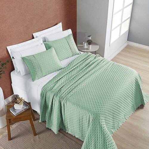 Cobre Leito Nobless Queen 03 Peças - Salvia O Cobre Leito Nobless é a escolha perfeita para transformar seu quarto em um refúgio de conforto e estilo. Feito com tecido micropercal 200 fios e matelado ultrassônico, oferece uma sensação suave e agradável. Seu design encantador é complementado pelo acabamento em leise nos porta travesseiros e no cobre leito, adicionando um toque de elegância discreta. Renove o visual do seu espaço de descanso com o Cobre Leito Nobless, proporcionando noites tranquilas e um descanso revigorante. O que vai na embalagem: 01 Cobre leito 2,60m x 2,40m 02 Porta travesseiros 70cm x 50cm