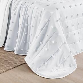 Cobre Leito Poppy King 03 Peças - Branco Confeccionado em tecido Micropercal com toque acetinado o Cobre Leito Poppy, com seus detalhes em pompom 3D, é como um convite ao mundo dos sonhos onde cada detalhe é uma fonte de alegria e beleza. O Cobre Leito Poppy Dupla Face é confeccionado com tecido Micropercal 300 fios, e seu composê liso em Micropercal de 200 fios. Combine o Cobre Leito Poppy com as almofadas da mesma coleção para um visual completo e sofisticado em seu quarto. O que vai na embalagem:KING 03 PEÇAS01 Cobre leito 2,80m x 2,40m02 Porta travesseiros 80cm x 55cm | medida útil: 70cm x 50cm Composição: Tecido: Superior e Inferior 100% PoliésterEnchimento: 100% Poliéster
