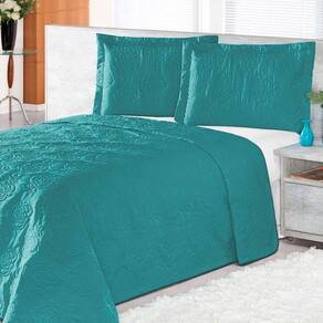 Cobre Leito Pratic Rosas Queen 3 Pecas - Azul Sky - Única