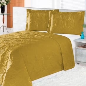 Cobre Leito Pratic Rosas Solteiro 2 Pecas - Mostarda O Cobre Leito Rosas, possui detalhes ultrassônicos (onde um tecido é unido ao outro sem linha) em formato de rosas, é fácil de lavar e possui secagem rápida. PRODUTO COMPOSTO POR: 1 COBRE LEITO.....2,15M X 1,50M 1 PORTA TRAVESSEIRO......65CM X 45CM COMPOSICAO TECIDO 100% POLIESTER ENCHIMENTO 100% POLIESTER Marca: Enxovais Aquarela | Estampa: Não se Aplica | Medidas: 1 COBRE LEITO.....2,15M X 1,50M1 PORTA TRAVESSEIRO......65CM X 45CM | Número de Peças: 02 Peças | Material: Poliéster | Cor Predominante: Mostarda | Cama Indicada: Solteiro