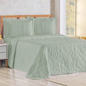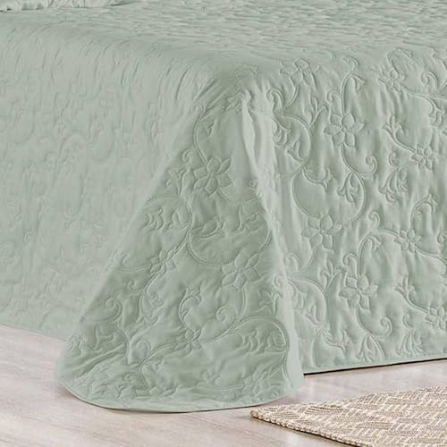 Cobre Leito Queen Bouti Mavie Floral 180 Fios 3 Peças - Verde Malva