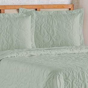 Cobre Leito Queen Bouti Mavie Floral 180 Fios 3 Peças - Verde Malva