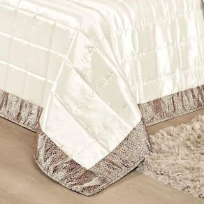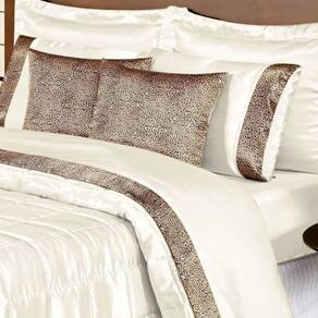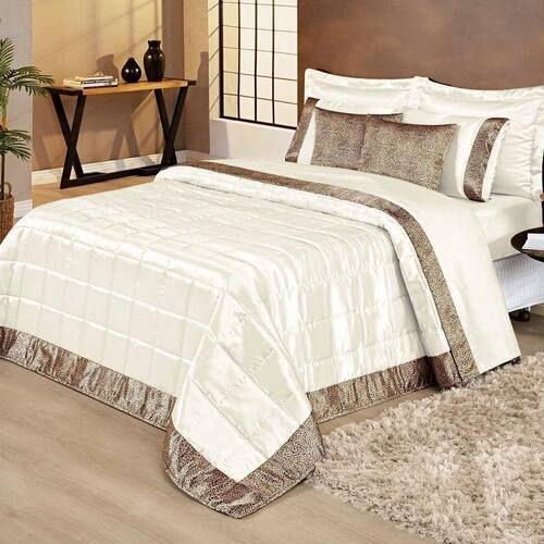 Cobre Leito Queen Cetim Glamour 9pç Palha Kit Cobre Leito confeccionado em tecido Cetim Glamour totalmente matelado, detalhes na estampa Animal Print, alto padrão de qualidade e requinte na decoração da cama. Contém na embalagem:01 Cobre Leito Comp (2,70m) x Larg (2,60m)02 Porta travesseiros lisos (com bordas) Comp (80cm) x Larg(55cm) (medida útil 70cm x 50cm)02 Almofadas estampadas (45cm x 45cm)02 Refis de travesseiros (70cm x 50cm)02 Refis de almofadas (45cm x 45cm) *Observações: Considere as medidas e formatos especificados na descrição do produto.* Decoração requintada e alta qualidade Composição:Tecidos - Superior= Cetim 100% Poliéster // Inferior 100% PoliésterEnchimento 100% PoliuretanoAs fotos são meramente ilustrativas.As cores podem variar de acordo com cada monitor e não representam todas as peças que compõem a descrição do produto.Fique atento à descrição do produto. Marca: LILLY HOME ENXOVAIS Ean: 7797834839212