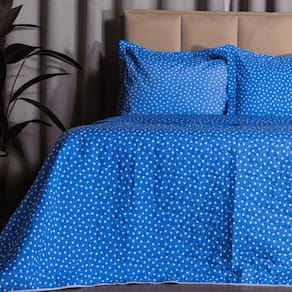 Cobre Leito Queen Classic Estampado 160 Fios 3 Peças Poa Azul