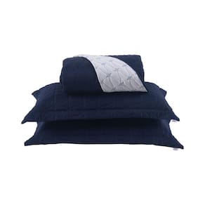 Cobre Leito Queen Cristal Percal 200 Fios Bordado 3 Peças - Azul Marinho - Única