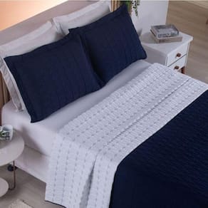 Cobre Leito Queen Cristal Percal 200 Fios Bordado 3 Peças - Azul Marinho