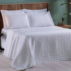 O cobre leito Decor é uma ótima opção de enxoval elegante e sofisticado. O cobre leito é todo bordado, com acabamento em toda volta do cobre leito em viés, junto com porta travesseiro bordado na parte frontal e liso na parte traseira com debrum (abas) em 3 lados e fechamento modelo envelope na parte traseira que impede que seu travesseiro saia de dentro da peça. Todas as peças do kit são fabricadas em tecido percal 200 fios 100% poliéster que possui maciez incomparável e garantia contra desbotamento e tecnologia antipilling que impede a formação de bolinhas mesmo após diversos usos e lavagens.