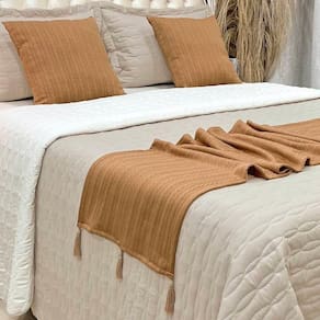 Cobre Leito Queen Decor Dupla Face Com Almofadas E Xale 8 Peças - Caramelo