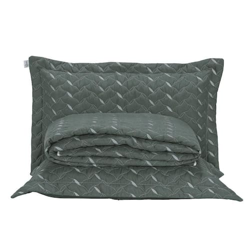 Cobre Leito Queen Heitor Bordado Hipercal 400 Fios 3 Peças - Verde Militar