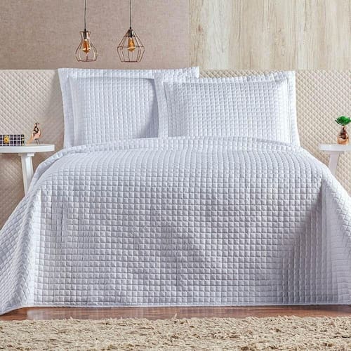 Versatilidade e visual moderno são as principais características do cobre leito Plata. Desenvolvido pensando na praticidade na hora de arrumar a cama mas sem deixar de lado a qualidade e conforto que esse produto oferece. O conjunto é composto por um cobre leito dupla face ;(ambos os lados da mesma cor) ;e dois portas travesseiros em percal 200 fios super macio para te inspirar na hora de fazer sua composição de cama posta. Todas as peças são matelassadas em formato pastilhado.