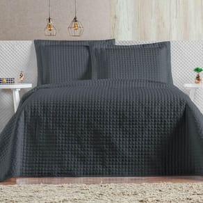Versatilidade e visual moderno são as principais características do cobre leito Plata. Desenvolvido pensando na praticidade na hora de arrumar a cama mas sem deixar de lado a qualidade e conforto que esse produto oferece. O conjunto é composto por um cobre leito dupla face ;(ambos os lados da mesma cor) ;e dois portas travesseiros em percal 200 fios super macio para te inspirar na hora de fazer sua composição de cama posta. Todas as peças são matelassadas em formato pastilhado.