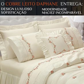 Nada se compara à sensação de se deitar em uma cama vestida com um cobre leito macio e elegante após um longo dia. O Cobre Leito Queen Size 100% Algodão Daphane Bordado Super Luxuoso não é apenas uma escolha de estilo, mas também uma expressão de cuidado e carinho com você e sua família. Cada detalhe foi pensado para proporcionar o máximo de conforto e bem-estar. Invista em noites de sono tranquilas e em um quarto que reflita sua personalidade e bom gosto com este cobre leito luxuoso e acolhedor.