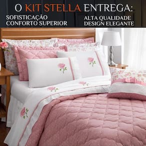 Mime-se com o luxo e o conforto do Cobre Leito Queen Size Stella Feito com 100% algodão e bordados de alta qualidade, este cobre leito é a peça perfeita para adicionar um toque de elegância ao seu quarto.