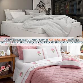 Contém na embalagem: 01 Cobre leito 2,60m comp x 2,40m larg 02 Porta-travesseiros Estampados 75cm x 55cm 02 Porta-travesseiros Poá 75cm x 55cm 01 Capa de almofada 45cm x 45cm 01 Refil de almofada 45cm x 45cm