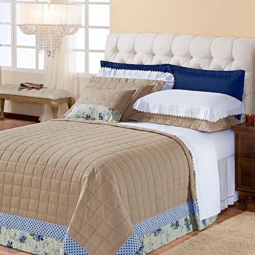 1. Cobre Leito Exclusivo: Com dimensões generosas de 2,60m x 2,40m, o cobre leito Inovare Queen cobre sua cama de maneira elegante e harmoniosa. Seu design sofisticado e atemporal é perfeito para qualquer estilo de decoração.