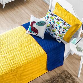 Cobre Leito Solteiro 5 Peças Amarelo/Marinho Coleção Dino O mundo dos dinossauros invade o quarto dos meninos A nossa coleção Dino é confeccionada em tecido 100% poliéster, sendo dupla face - o que permite ser dos dois lados e assim ter duas versões com o mesmo produto - e matelassado com a tecnologia ultrassônica. O porta travesseiro e a almofada são impressas com a tecnologia digital, garantido assim uma alta definição da estampa. CONTEÚDO DA EMBALAGEM - 01 Cobre Leito - 2,50 m x 1,80 m - 01 Porta Travesseiro - 65 cm x 45 cm - 01 Fronha estampada - 65 xm x 45 cm - 01 Capa de almofada - 40 cm x 40 cm - 01 Refil de almofada - 40 cm x 40 cm COMPOSIÇÃO - Tecido 100% Poliéster - Enchimento: 100% Poliéster FICHA TÉCNICA - Quantidade de peças: 05 - Cor: Amarelo/Marinho - Bordado: Não - Fabricação: Matelado Ultrassônico - Fronha e almofada com estampas digitalizadas ORIENTAÇÕES PARA LAVAGEM - Processo de lavagem suave; - Lavar com temperatura máxima de 40C; - Não deixar o produto de molho, pois roupas de cama de cor forte podem desbotar; - Utilizar sabão neutro; - Evite sabão do tipo limpeza profunda e/ou tira manchas; - Não alvejar / não branquear; - Não secar em secador rotativo não utilizar secadora ; - Não lavar a seco; - Passar com temperatura baixa temperatura máxima de 110C ; - Vapor pode causar danos irreversíveis. ATENÇÃO - Verificar as dimensões do produto antes da compra. - É necessário levar em consideração a altura da cama ou a altura do box da cama + colchão, para que o caimento do produto seja perfeito. - Siga as orientações para lavagem para aumentar a vida útil das peças - Variação das cores pode ocorrer de acordo com a configuração do monitor. - As peças decorativas não estão inclusas neste produto. - Variação da tonalidade do tecido pode ocorrer de acordo com o lote da matéria prima; - Foto ilustrativa. Marca: Não Informado Ean: 7899792227930