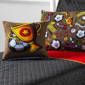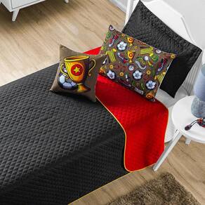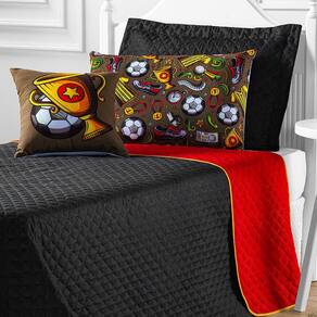 Cobre Leito Solteiro 5 Peças Preto/Vermelho Coleção Futebol O kit coleção futebol é um show de bola e a escolha perfeita para quem é apaixonado por esse tema. Sendo um dos esportes mais famosos e mais adorados do planeta, elementos como a atmosfera dos estádios, a animação da torcida, a arquibancada lotada, a paixão pelo seu time, e arte na ponta dos pés dos jogadores foram os pontos de partida para a criação colorida e cheia estampa futebol - design exclusivo da lux enxovais. Essa coleção conta com duas cores lindas e modernas que fará o dono do quarto se sentir um verdadeiro campeão. Com a proposta de alegrar o ambiente e proteger a cama, esse kit é confeccionado em tecido 100% poliéster, sendo dupla face - o que permite ser dos dois lados e assim ter duas versões com o mesmo produto - e matelassado com a tecnologia ultrassônica. O porta travesseiro e a almofada são impressas com a tecnologia digital, garantido assim uma alta definição da estampa. O kit coleção futebol solteiro é composto por 01 cobre leito dupla face com vira, 01 porta travesseiro dupla face com zíper, 01 fronha com estampa digital e zíper e 01 almofada com estampa digital e zíper. Conteúdo da embalagem - 01 cobre leito - 2,50 m x 1,80 m - 01 porta travesseiro - 65 cm x 45 cm - 01 fronha estampada - 65 xm x 45 cm - 01 capa de almofada - 40 cm x 40 cm - 01 refil de almofada - 40 cm x 40 cm Composição textil - tecido 100% poliéster - enchimento: 100% poliéster Ficha técnica - quantidade de peças: 05 - cor: estampa futebol preto/vermelho - bordado: não - fabricação: matelado ultrassônico - fronha e almofada com estampas digitalizadas Orientações para lavagem - utilizar processo de lavagem muito suave ou manual; - temperatura máxima da água de 30c; - não deixar o produto de molho, pois roupas de cama de cor forte podem desbotar; - utilizar sabão neutro. - evite sabão do tipo limpeza profunda e/ou tira manchas; - não alvejar / não branquear; - não secar em secador rotativo não utilizar secadora ; - não lavar a seco; - passar com temperatura baixa, sem vapor temperatura máxima de 110c ; - vapor pode causar danos irreversíveis. Atenção - quantidade de peças vide campo conteúdo da embalagem. - pode ocorrer variação de tonalidade do tecido de acordo com o lote da matéria-prima. - verificar as dimensões do produto antes da compra. - é necessário levar em consideração a altura da cama ou a altura do box da cama + colchão, para que o caimento do produto seja perfeito. - siga as orientações de lavagem para aumentar a vida útil das peças. - variação das cores pode ocorrer de acordo com a configuração do monitor. - as peças decorativas não estão inclusas neste produto. - foto ilustrativa. Marca: Não Informado