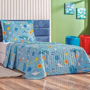Kit Cobre Leito Solteiro dupla face confeccionado em tecido Microfibra com matelassê com alto padrão de qualidade, proporcionando conforto e descontração para o quarto.