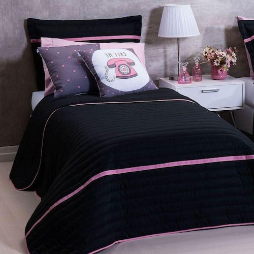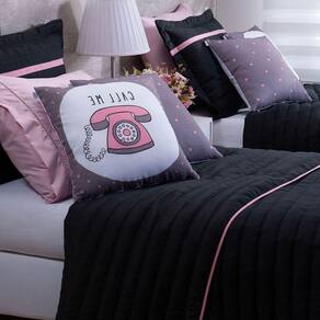 Renove o visual do seu quarto com nosso incrível e confortável Kit Inove. Surpreenda-se com o conforto e maciez do tecido. O kit é composto por um cobre leito matelassado dupla face preto com detalhe de viés, porta travesseiro também matelassados com detalhe de viés colorido e duas capas de almofadas estampadas digitalmente, com estampa apenas na parte frontal e zíper invisível super discreto.