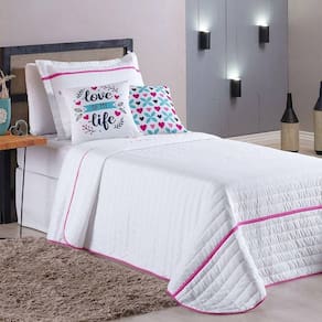 Renove o visual do seu quarto com nosso incrível e confortável Kit Inove. Surpreenda-se com o conforto e maciez do tecido. O kit é composto por um cobre leito matelassado dupla face preto com detalhe de viés, porta travesseiro também matelassados com detalhe de viés colorido e duas capas de almofadas estampadas digitalmente, com estampa apenas na parte frontal e zíper invisível super discreto.