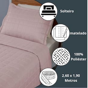 Cobre Leito Solteiro Matelado Soft Dupla Face com Porta-Travesseiro Variação: Rosê Olá Está procurando renovar o visual da cama com praticidade, conforto e um toque moderno Seja bem-vindo à Atual Ecommerce Pensamos em você que valoriza conforto sem abrir mão do bom gosto e do custo-benefício. Apresentamos o Kit 2 Peças Cobre Leito Solteiro Soft Dupla Face Matelado - o produto ideal para quem busca um item versátil, aconchegante e fácil de cuidar. Você já se pegou trocando capas ou jogos de cama o tempo todo para combinar com a decoração O Soft Dupla Face resolve esse problema Com duas opções de cores em um único produto, você tem liberdade para mudar o estilo do quarto sempre que quiser - com praticidade e sem gastar mais. Veja o que nossos clientes destacam: Versatilidade em dobro: A função dupla face permite criar dois visuais diferentes com um único produto. Ideal para quem gosta de mudar Toque macio e leveza para o dia a dia: O tecido é muito gostoso e leve, perfeito para climas mais quentes. - Denise S. Qualidade com ótimo custo-benefício: não imaginava tanta qualidade por esse preço. Comprei para o meu filho e vou comprar outro para mim. - Roberto C. Especificações Técnicas: Kit com 2 peças 01 Cobre-leito Solteiro: 2,60 m x 1,90 m 01 Porta-travesseiro: 70 cm x 50 cm com aba americana Tecido: 100% poliéster Enchimento: 100% poliéster Acabamento: Matelado em costura Dupla face: 2 cores em um único produto Cores disponíveis: 6 opções Categoria: Casa - Quarto / Cama Solteiro - Cobre Leitos e Colchas : 3 meses contra defeitos de fabricação - mais segurança e confiança para sua compra. O Kit Soft é aquele item coringa que todo lar merece ter Garanta já o seu e transforme o visual do quarto com um simples toque. Agradecemos a sua visita. Boas compras Marca: Não Informado