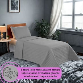 Cobre Leito Solteiro Matelado Soft Dupla Face com Porta-Travesseiro Variação: Cinza Olá Está procurando renovar o visual da cama com praticidade, conforto e um toque moderno Seja bem-vindo à Atual Ecommerce Pensamos em você que valoriza conforto sem abrir mão do bom gosto e do custo-benefício. Apresentamos o Kit 2 Peças Cobre Leito Solteiro Soft Dupla Face Matelado - o produto ideal para quem busca um item versátil, aconchegante e fácil de cuidar. Você já se pegou trocando capas ou jogos de cama o tempo todo para combinar com a decoração O Soft Dupla Face resolve esse problema Com duas opções de cores em um único produto, você tem liberdade para mudar o estilo do quarto sempre que quiser - com praticidade e sem gastar mais. Veja o que nossos clientes destacam: Versatilidade em dobro: A função dupla face permite criar dois visuais diferentes com um único produto. Ideal para quem gosta de mudar Toque macio e leveza para o dia a dia: O tecido é muito gostoso e leve, perfeito para climas mais quentes. - Denise S. Qualidade com ótimo custo-benefício: não imaginava tanta qualidade por esse preço. Comprei para o meu filho e vou comprar outro para mim. - Roberto C. Especificações Técnicas: Kit com 2 peças 01 Cobre-leito Solteiro: 2,60 m x 1,90 m 01 Porta-travesseiro: 70 cm x 50 cm com aba americana Tecido: 100% poliéster Enchimento: 100% poliéster Acabamento: Matelado em costura Dupla face: 2 cores em um único produto Cores disponíveis: 6 opções Categoria: Casa - Quarto / Cama Solteiro - Cobre Leitos e Colchas : 3 meses contra defeitos de fabricação - mais segurança e confiança para sua compra. O Kit Soft é aquele item coringa que todo lar merece ter Garanta já o seu e transforme o visual do quarto com um simples toque. Agradecemos a sua visita. Boas compras Marca: Não Informado
